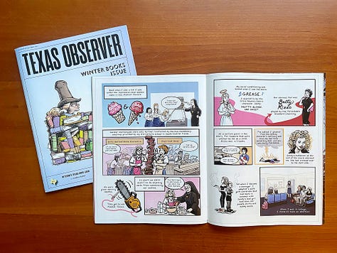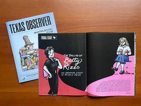 Our girl is unstoppable - she’s now featured in a 6-page visual essay in the November/December issue of The Texas Observer. The original 10-panel story has been expanded, and the final page is dedicated to an interview with a friend who used to work in abortion clinics in Austin. Read about Betty’s trip to Brussels in a previous post: